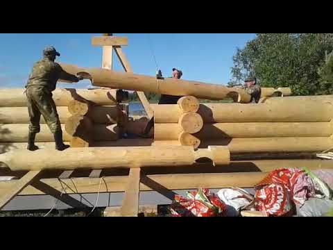 21. Видео репортаж поднятие брёвен тельфером (электрическая лебёдка)